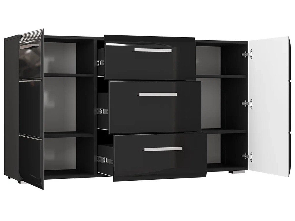 - Комод 3 ящика 2 двери без стекла Домино черный