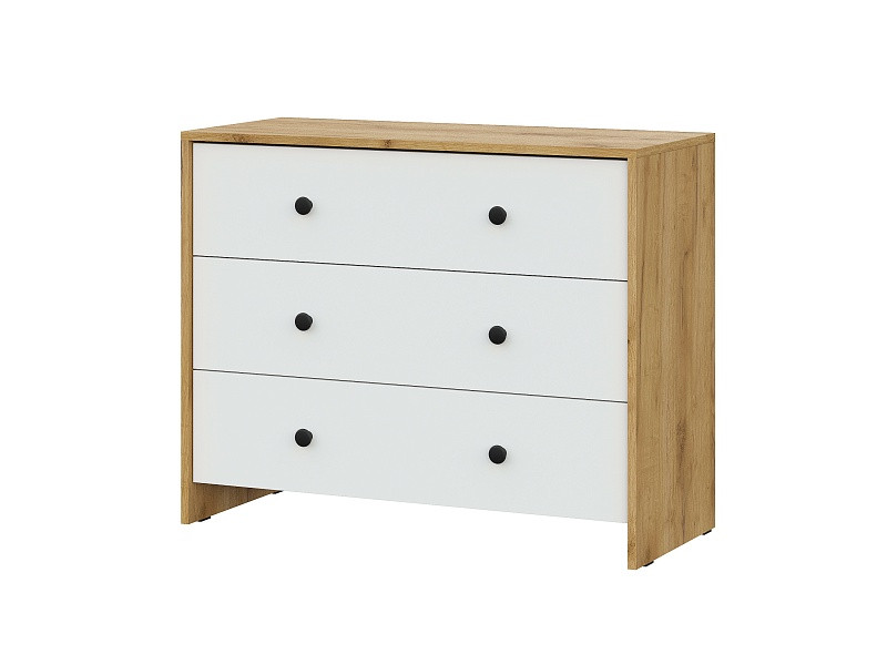 - Комод 3 ящика Дольче Дуб Золотой/Белый