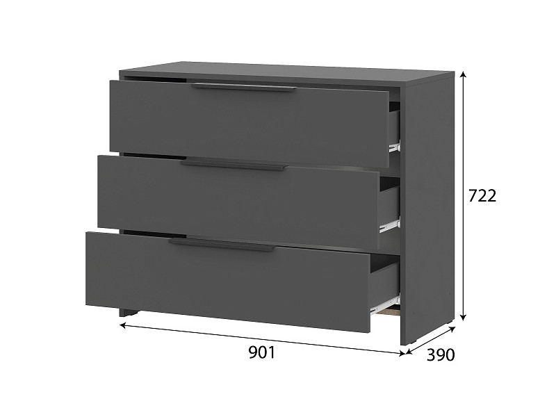 - Комод 3 ящика Камелия 1 Графит серый