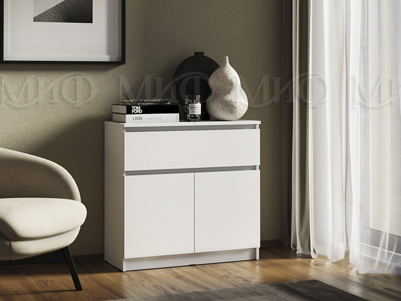 - Комод 800 1 ящик 2 двери Челси белый