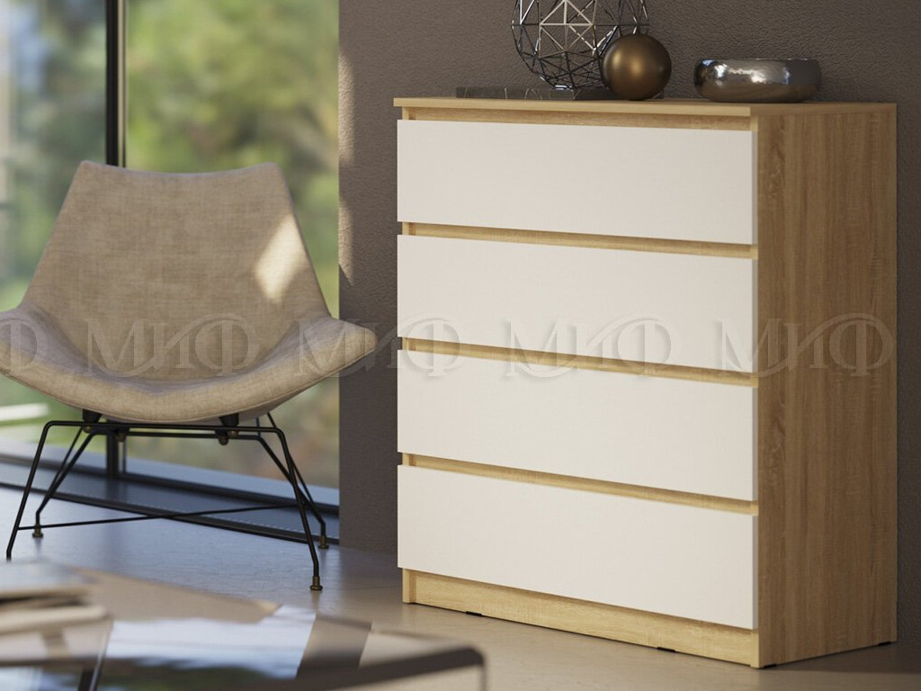 - Комод 800 4 ящика Челси Белый, дуб сонома