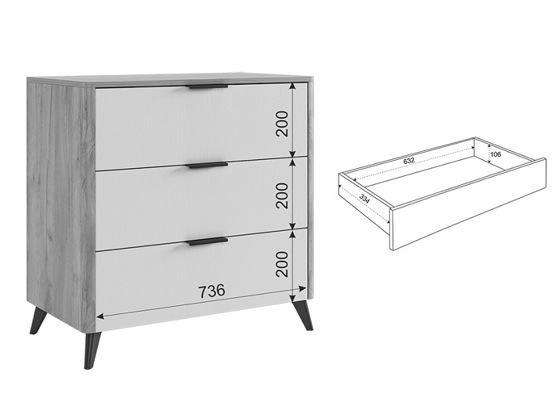 - Комод Адам дуб крафт золотой/белое дерево