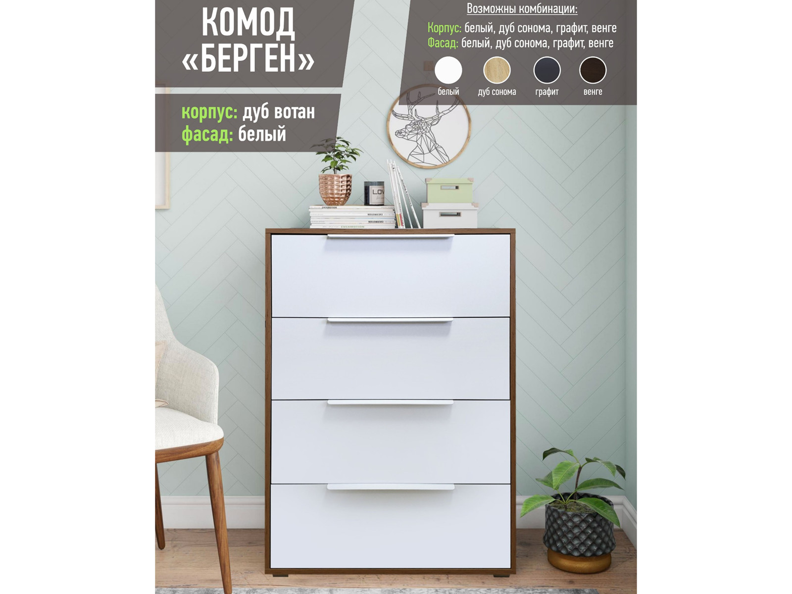 - Корпус: дуб вотан, белый, дуб сонома, дуб табачный