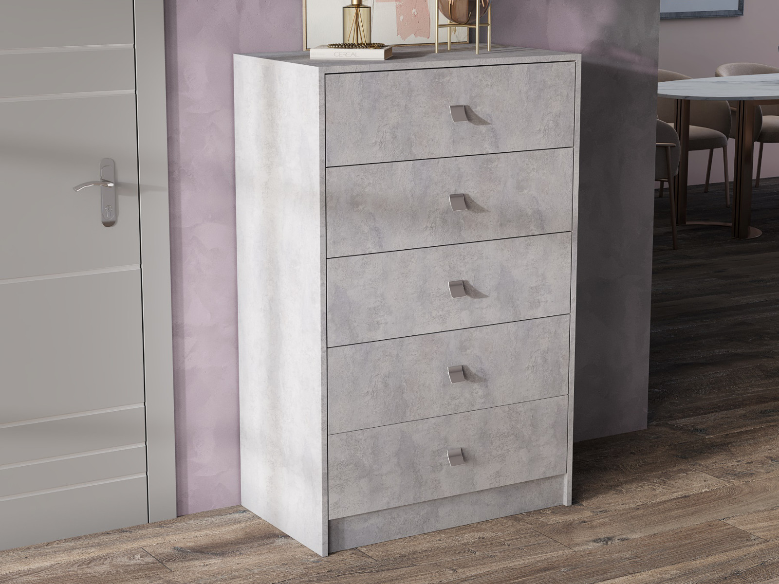 - Комод Лофт 5 ящиков цемент светлый