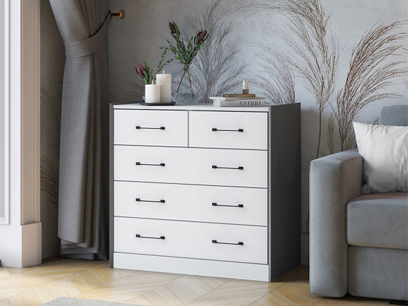 Цвет: ЛДСП Белый-Графит серый/МДФ Белый снег