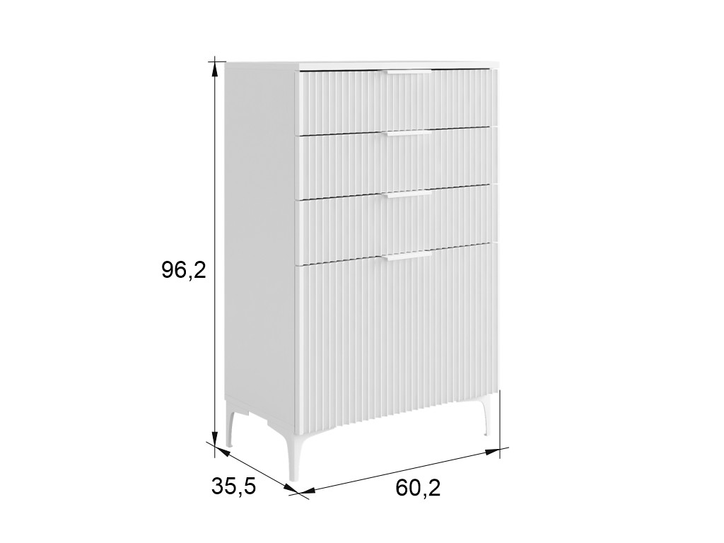 Комод «Зефир» — идеальное решение для детской и гостиной комнат. Он оснащён выкатными ящиками и откидной секцией, обеспечивая максимальный комфорт и удобство использования. Фасады украшены изящной фрезеровкой, которая придаёт изделию неповторимый шарм и элегантность.