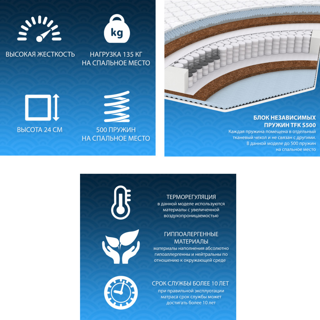 - Матрас Bio massage cocos double TFK шириной 1200 мм