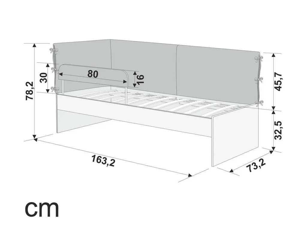 Высота кроватки позволяет легко залезать и слезать ребенку самостоятельно. Ортопедическое основание под матрас из 12 деревянных лат выдержит вес до 200 кг.