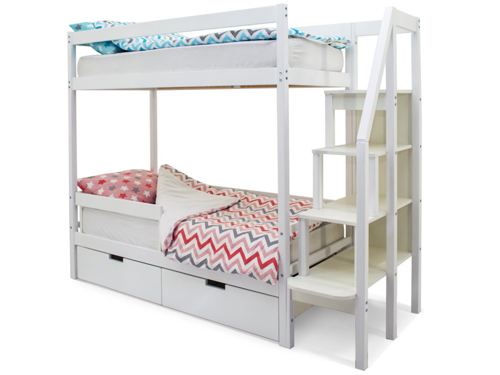 Двухъярусная кровать Svogen с ящиками и бортиком белый