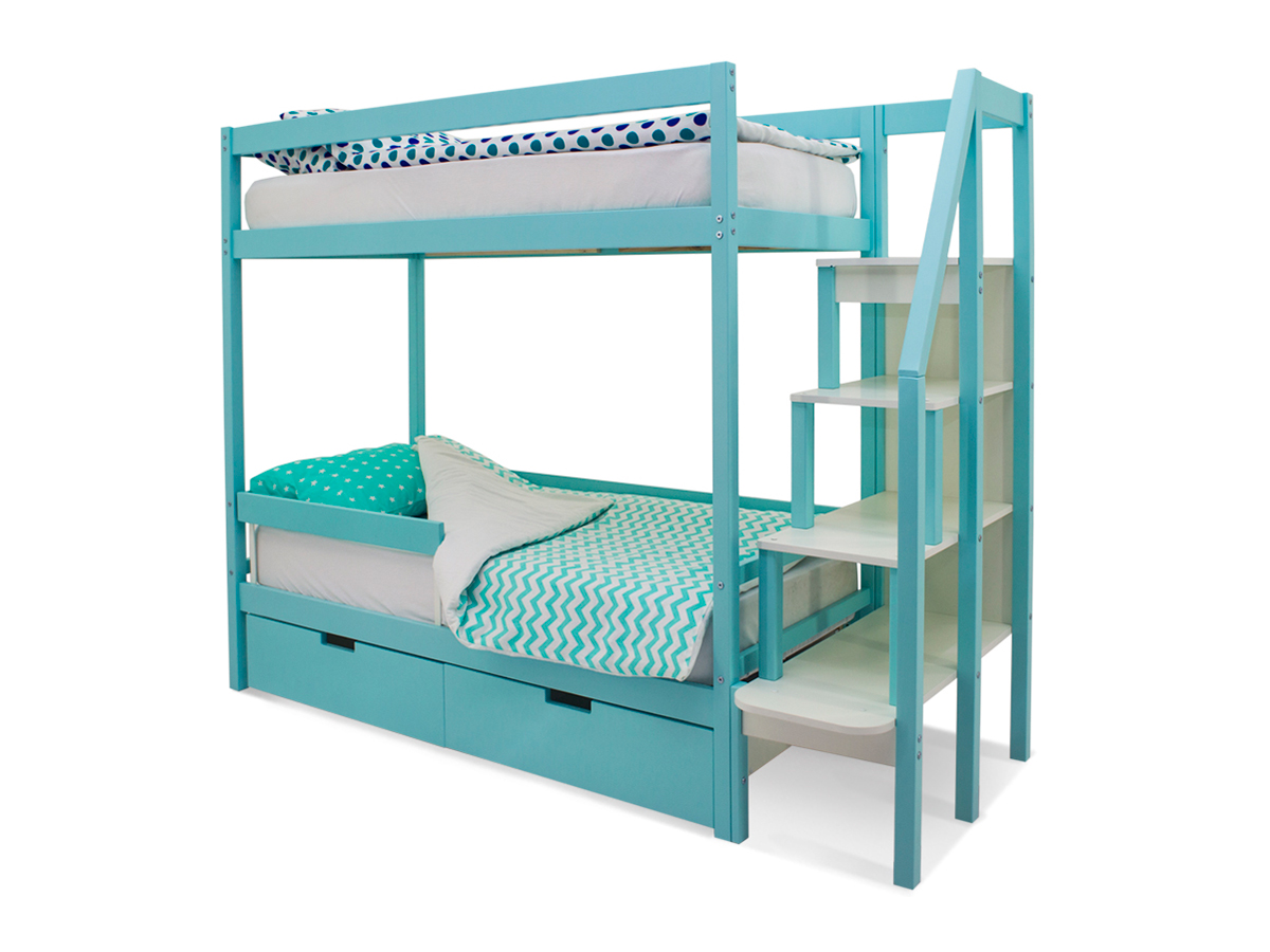 - Двухъярусная кровать Svogen с ящиками и бортиком мятный