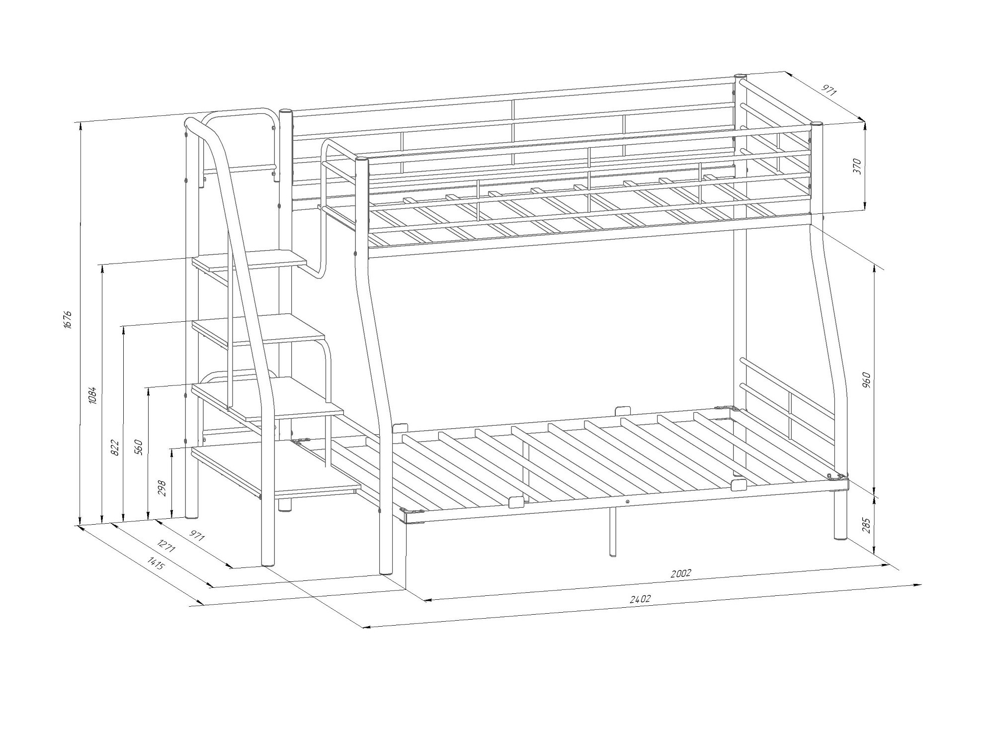 Размер нижнего спального места: 1400х1900 мм