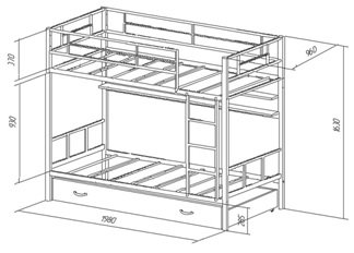размер нижнего/верхнего сп. места 900х1900 мм