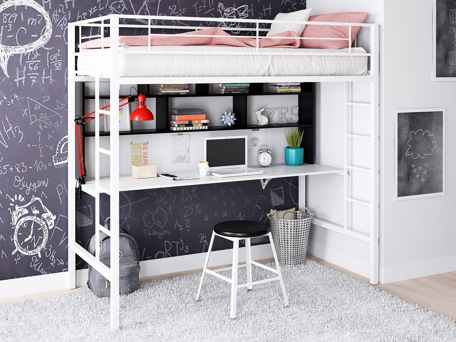 Кровать чердак с рабочей поверхностью и полкой Севилья-1.2