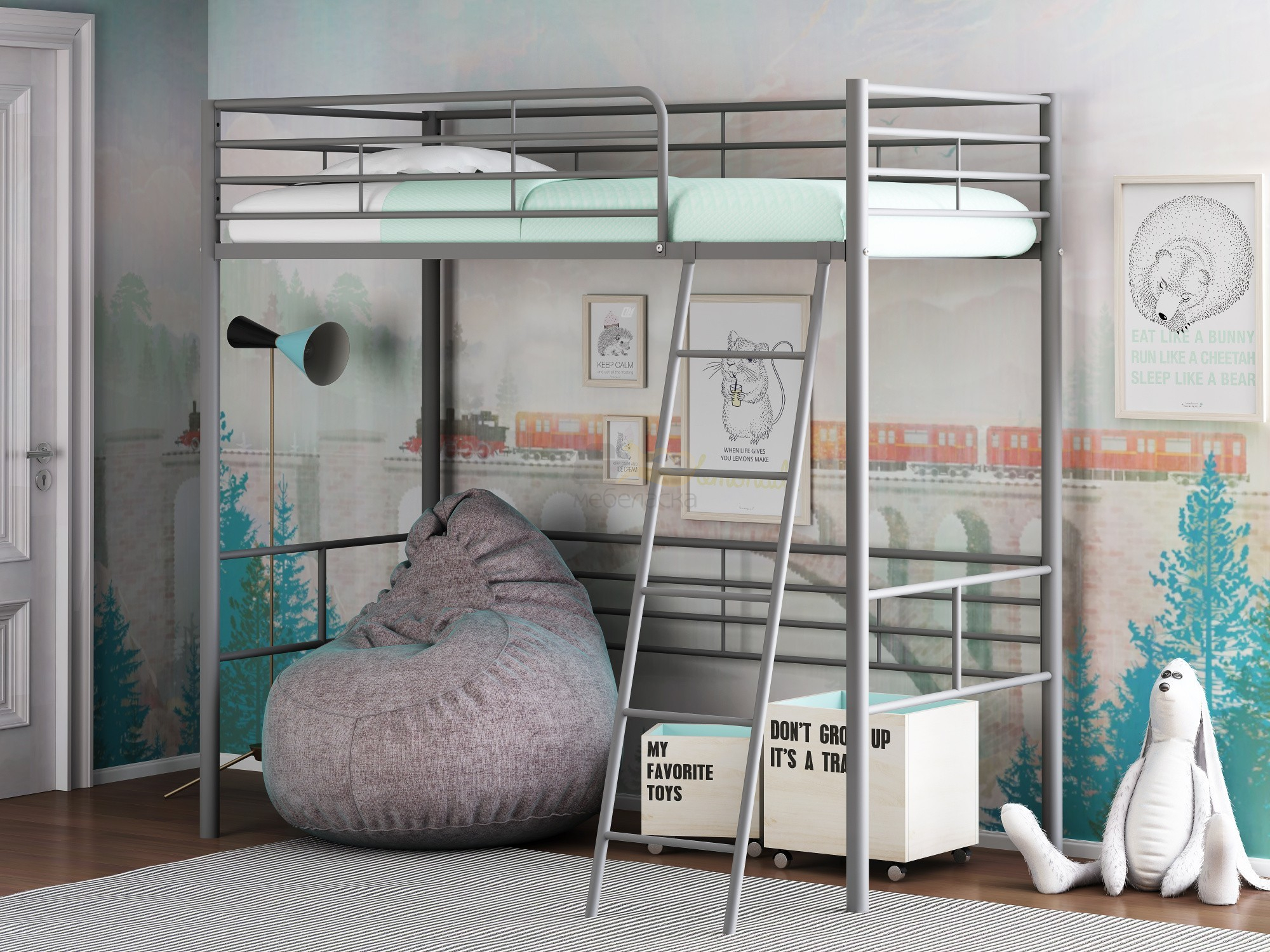 Кровать чердак Севилья 5.01 Серый