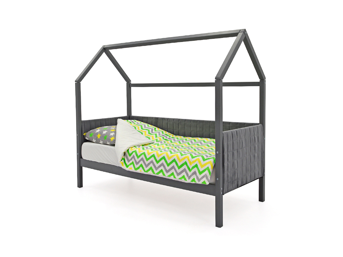 Кровать-домик мягкий Svogen графит