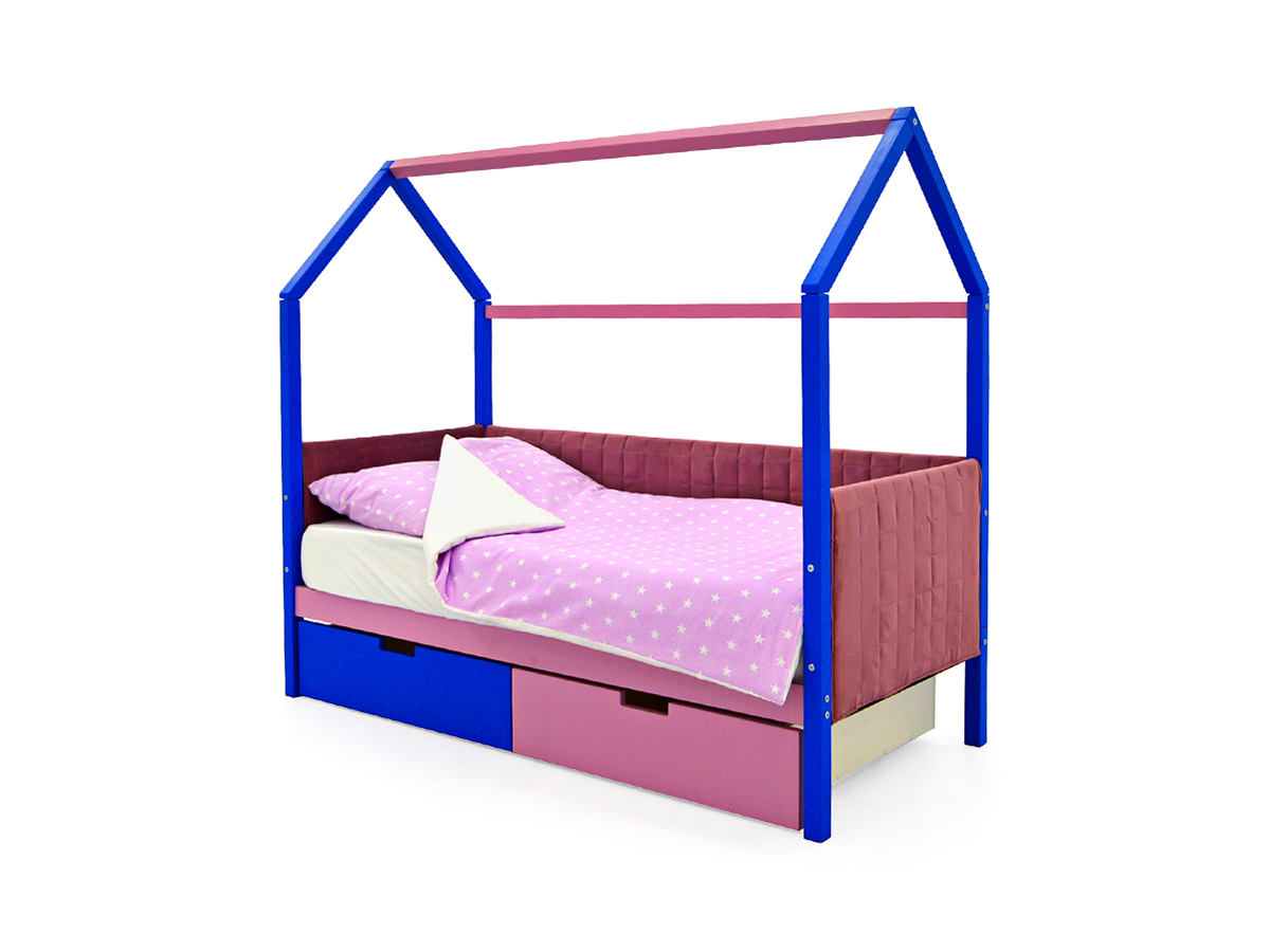 - Кровать-домик мягкий Svogen с ящиками синий-лаванда