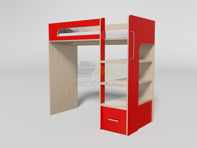 Подростковая кровать-чердак разработана с учетом требований эргономики и современного европейского дизайна. Кровать имеет одно полноценное спальное место. Ступени лесенки изготовлены из усиленной ЛДСП 32 мм. Внизу лестницы расположен вместительный короба для белья и игрушек.