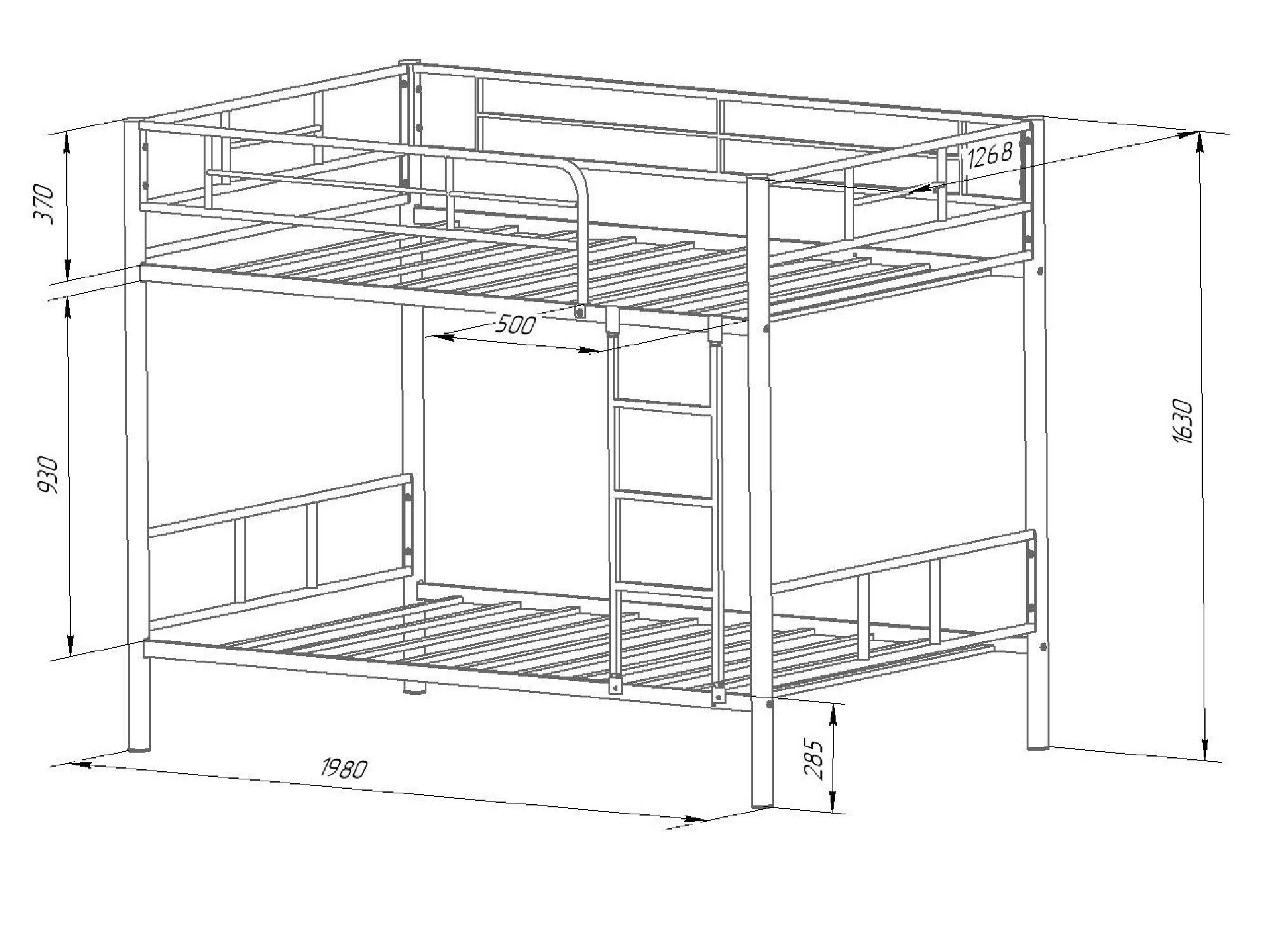 Ширина верхнего спального места: 1200х1900 мм