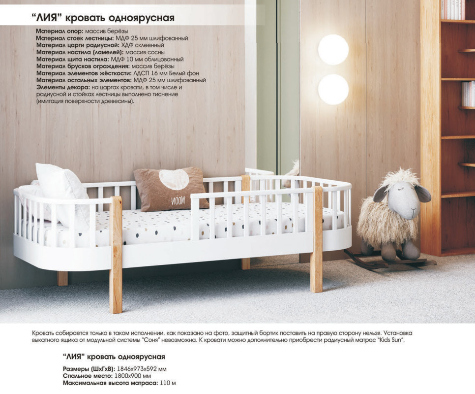 Обратите внимание, что одноярусную модель кровати можно собрать только на левую сторону. Конструкция изделия не предусматривает установку защитного бортика с правой стороны.