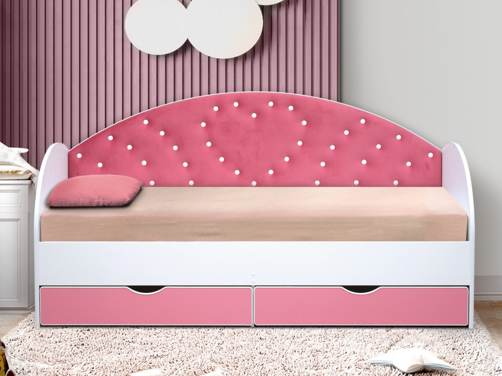 - Кровать с продольной мягкой спинкой Сердце №1 800х1900 мм розовая