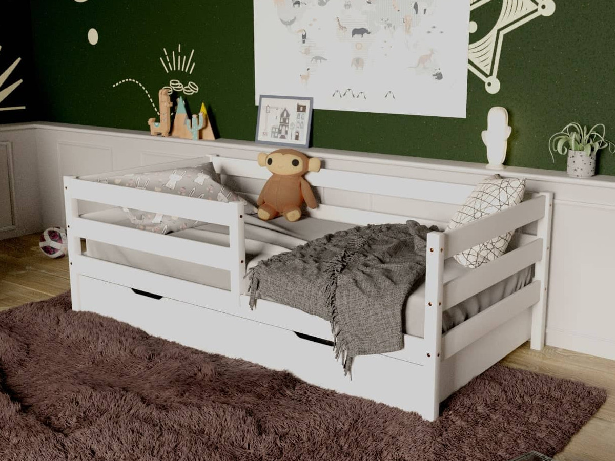 - Кровать-софа детская с бортиками белый 80х190 см с ящиками