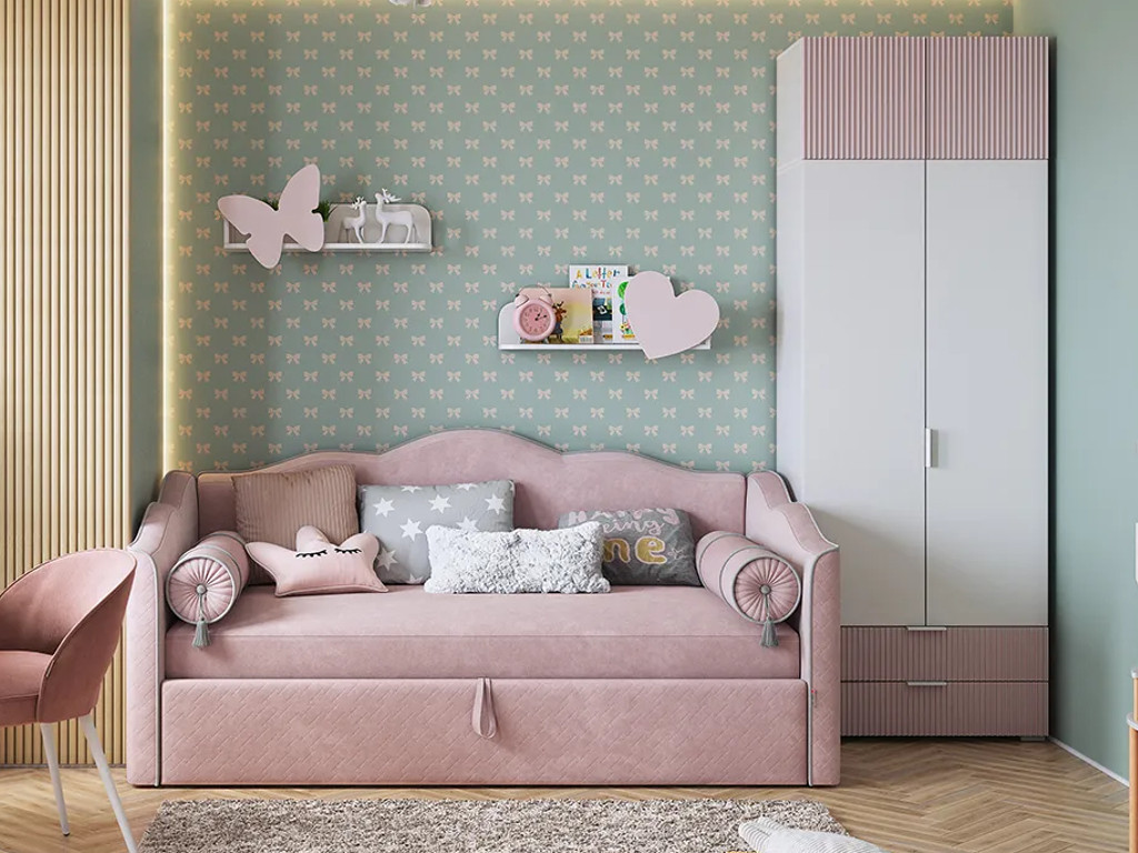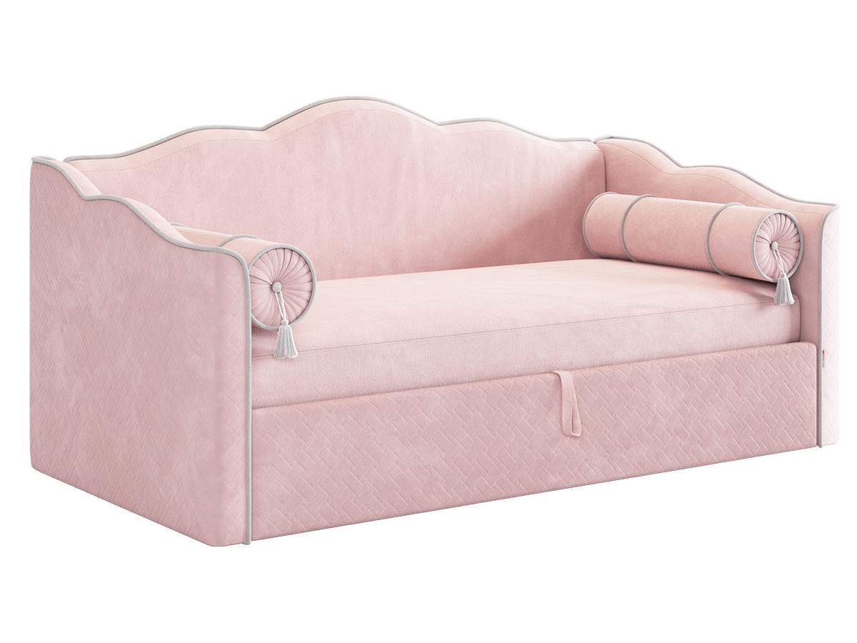 Кровать софа Лея 900 велюр нежно-розовый/галька
