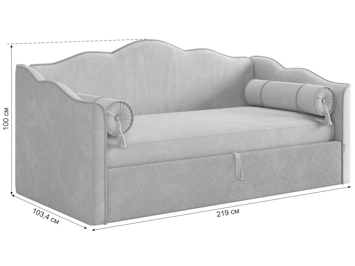 Дополнительно скомплектуйте кровать-софу матрацем 90х200см и наматрасником в цвет обивки.