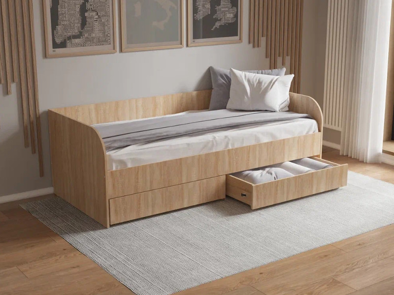 - Кровать-софа с ортопедическим основанием КС09 дуб сонома