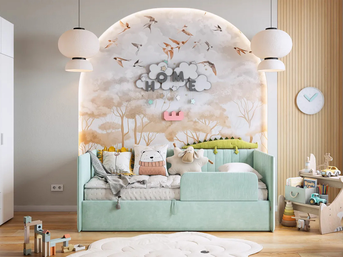 Кровать-софа с подъемным механизмом Твикс цвет велюра мята