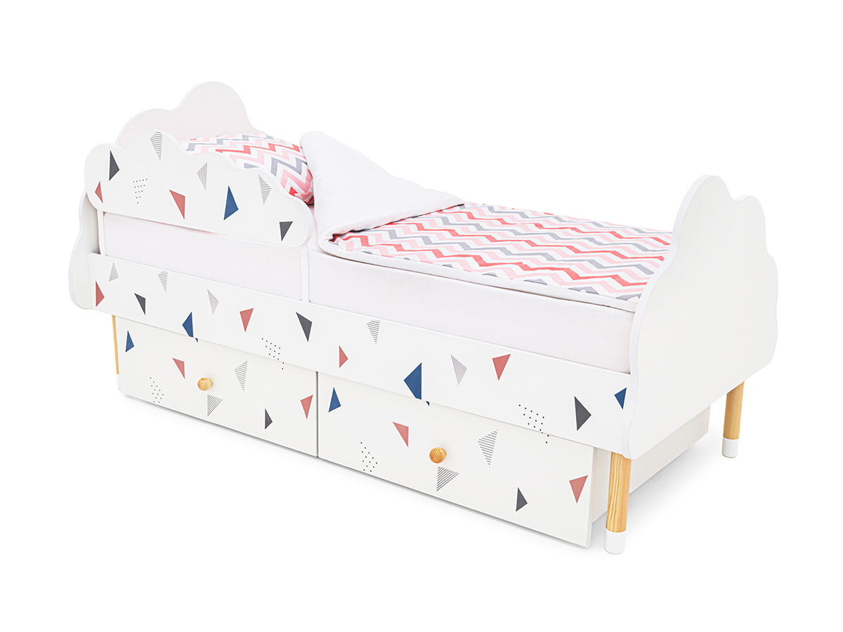 - Кровать Stumpa Облако бортик и ящики рисунок Треугольники розовый, синий