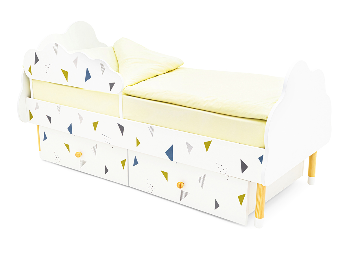 - Кровать Stumpa Облако бортик и ящики рисунок Треугольники зеленый, синий