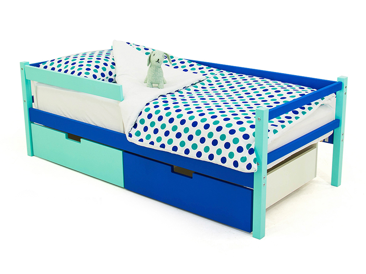 Кровать-тахта Svogen с ящиками и бортиком мятно-синий