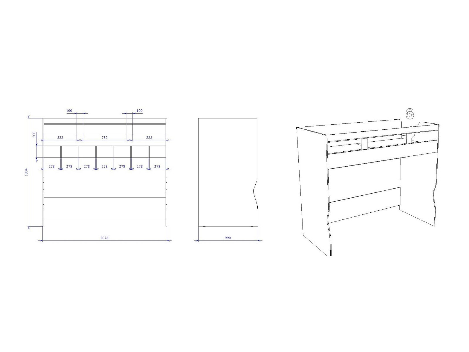 Спальное место: 900*2000 мм
