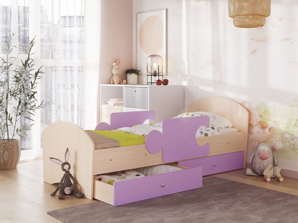 - Кровать Мозаика с бортиками и ящиком млечный дуб-ирис