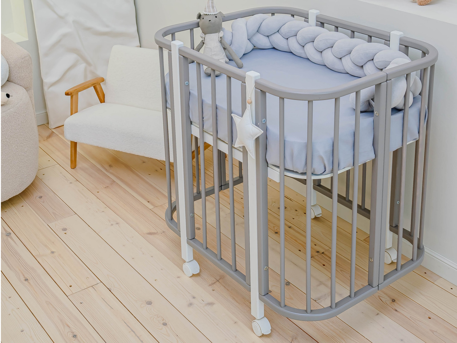 - Кроватка трансформер 4 в 1 Карамель серая