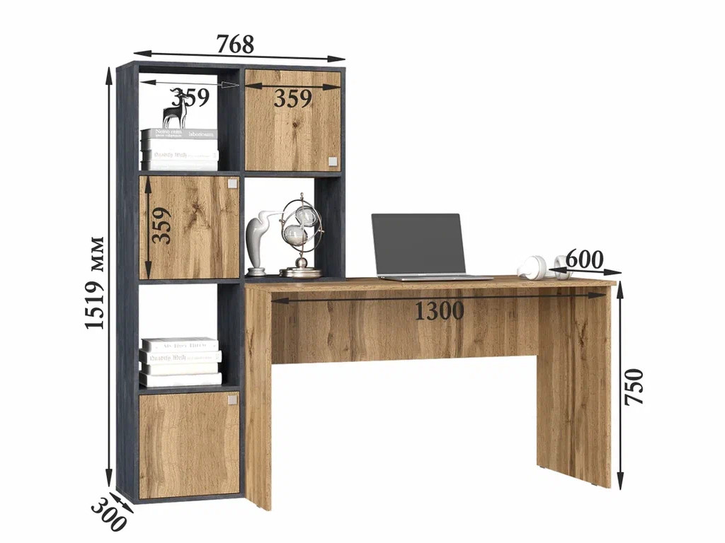 Стол компьютерный СК Юджин дуб вотан/обсидиан