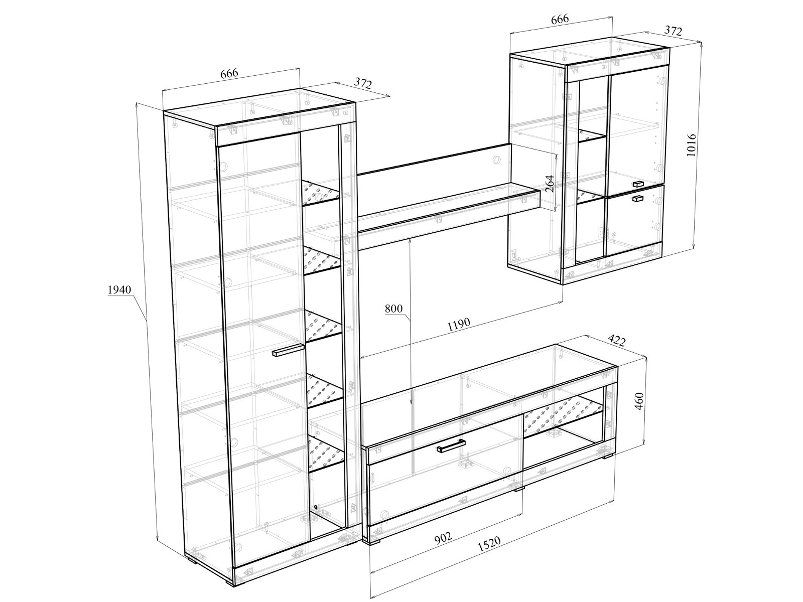 - Шкаф-витрина 666(Ш) х 1940(В) х 376(Г) мм