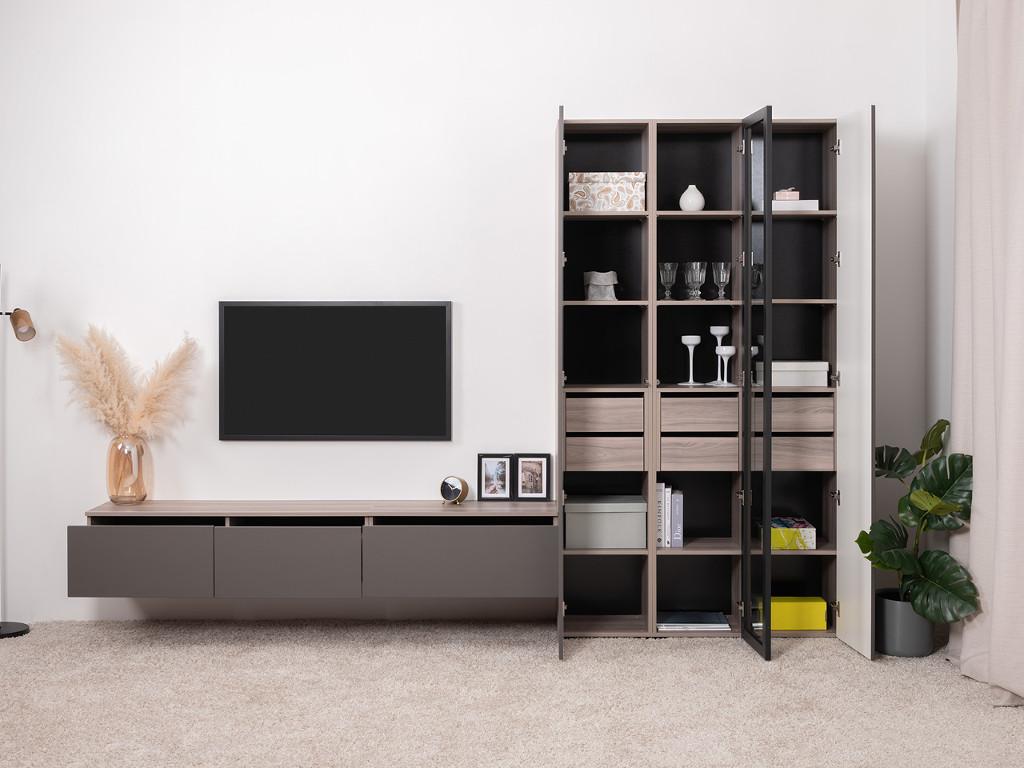 Цена за комплект: Тумба под ТВ 16.54.01, Тумба под ТВ 16.54.02, Шкаф-витрина 16.322.04,Шкаф-пенал 16.322.03 (2 шт)