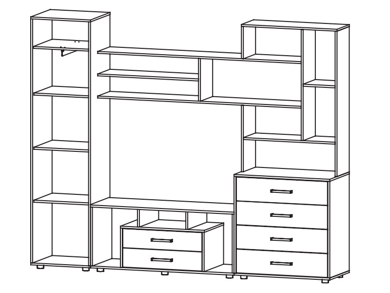 Ниша под ТВ: 1200(Ш) х 830(В) мм.
