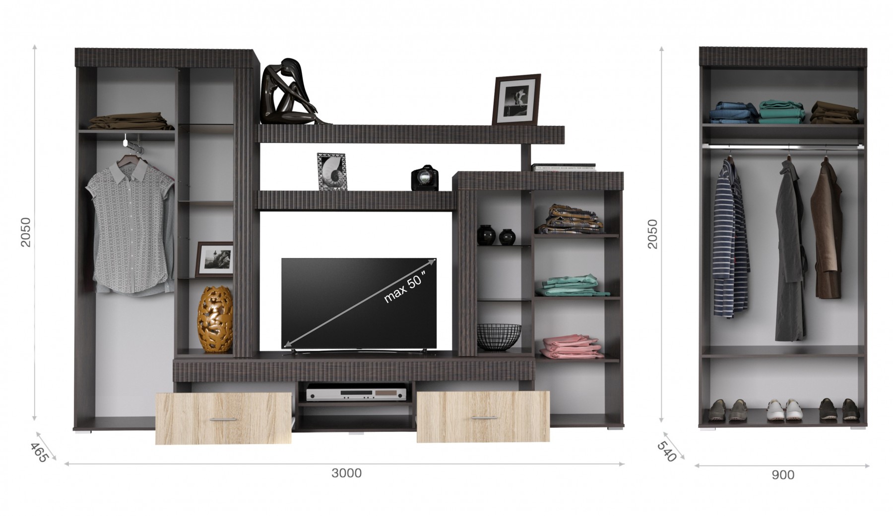 ТВ max: 50 дюймов