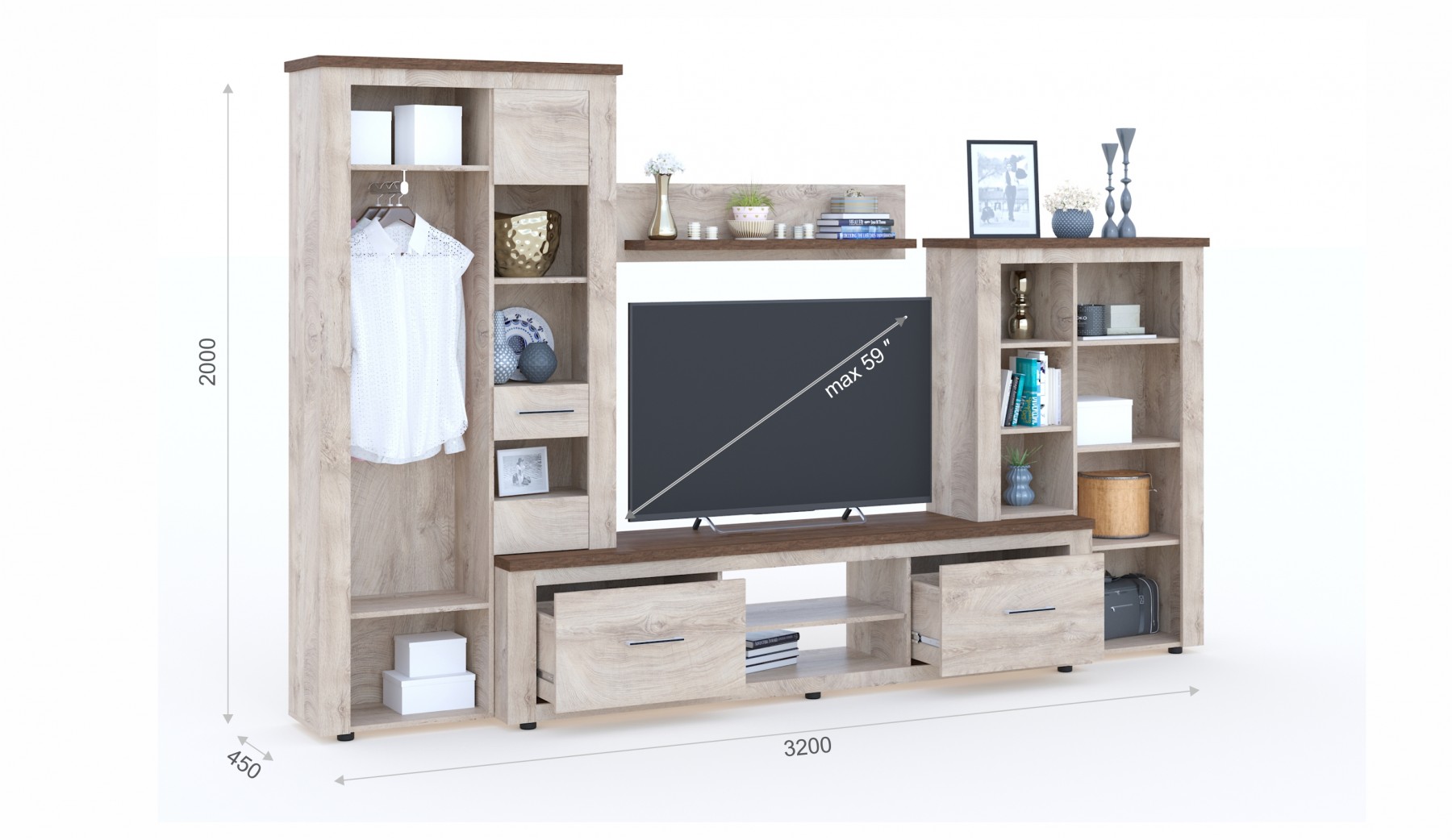 Габаритные размеры (Ш*Г*В): 3200х450х2000 мм