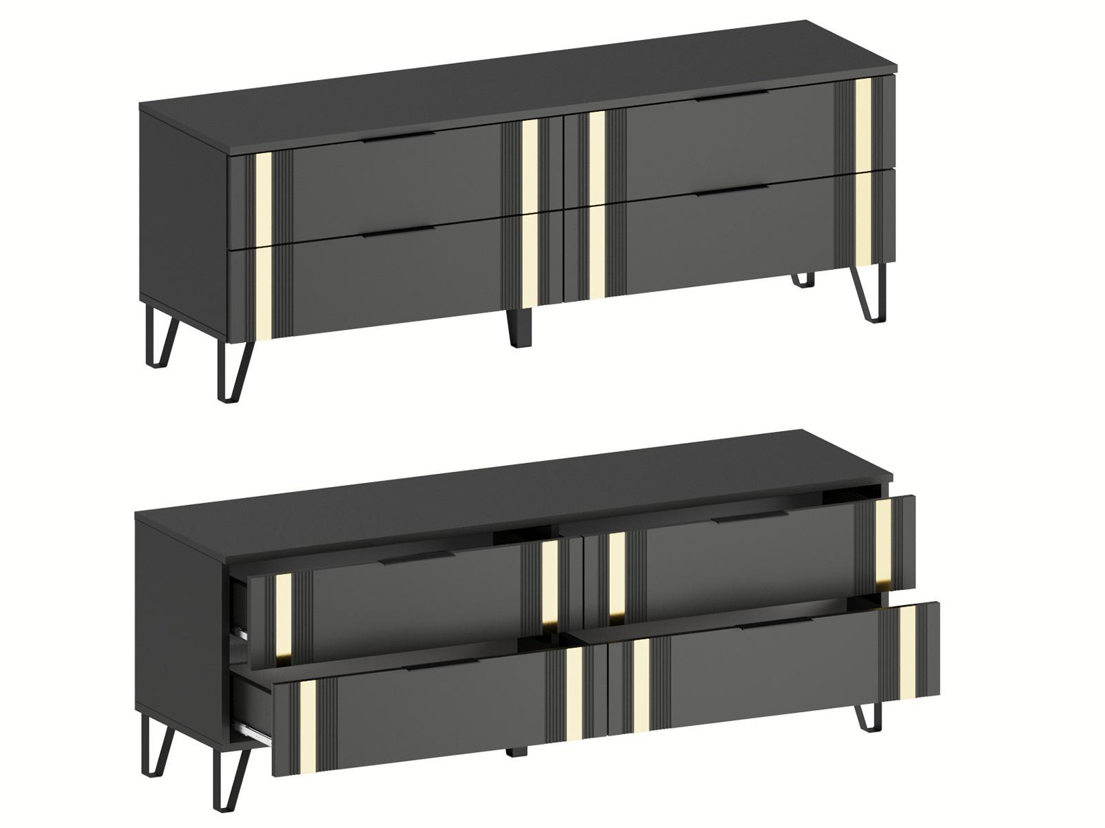 - Фасады МДФ украшены декоративной металлической лентой в цвете "Золото браш".