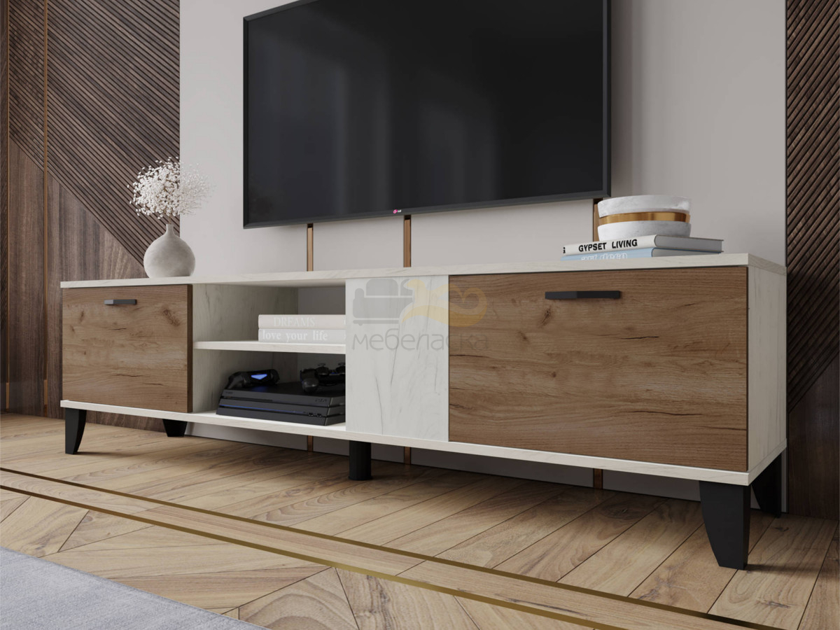 - Тумба под ТВ ТВМ-5 крафт белый/крафт табачный