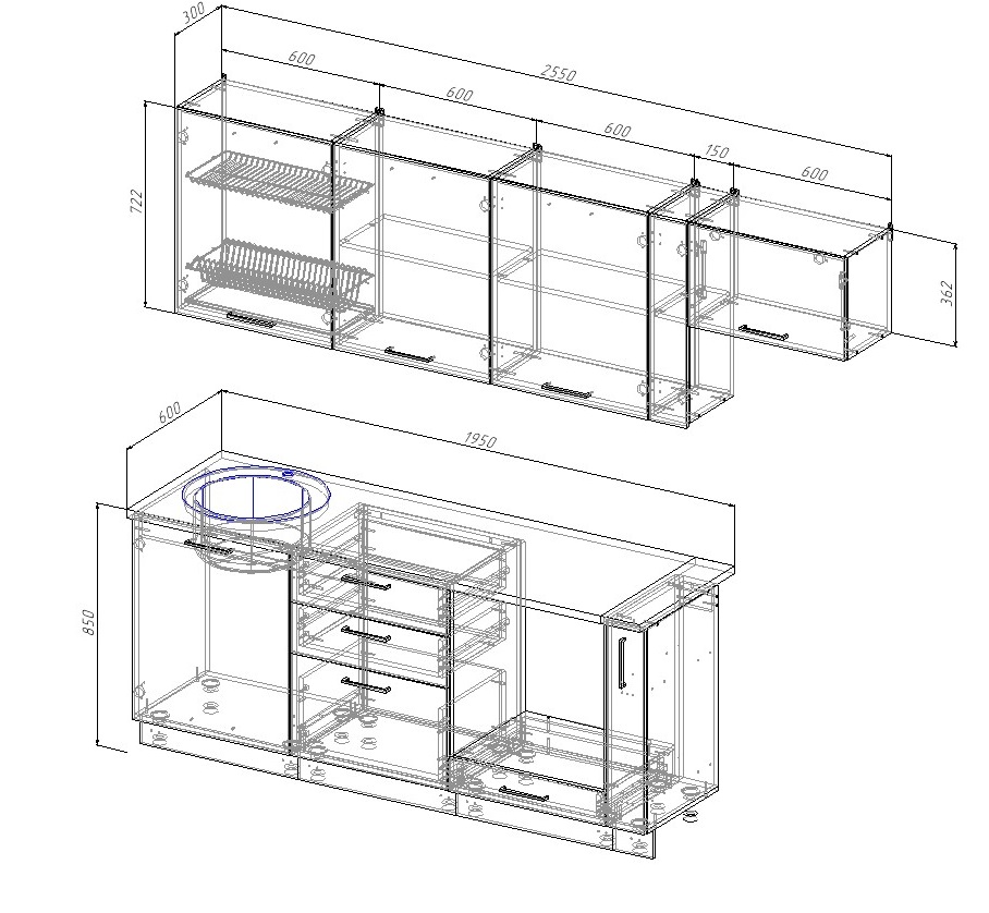 Можно комплектовать столешницей 38 мм +8% к стоимости кухни