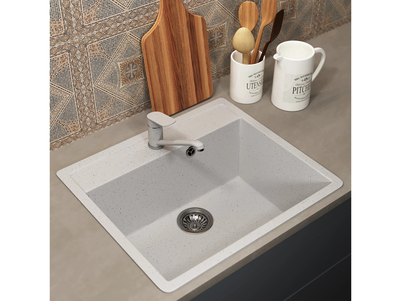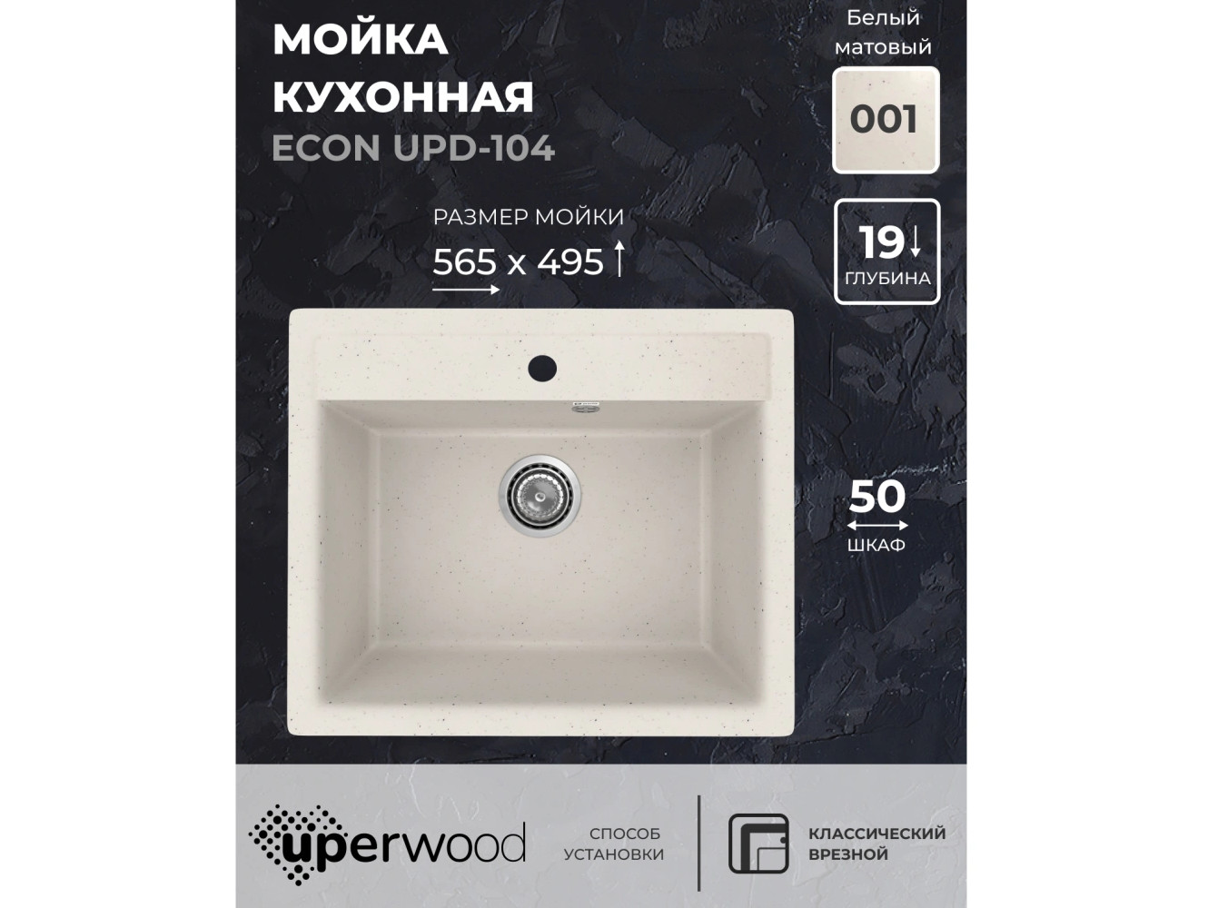 - Кухонная мойка Uperwood ECON UPD-104-001 белая матовая