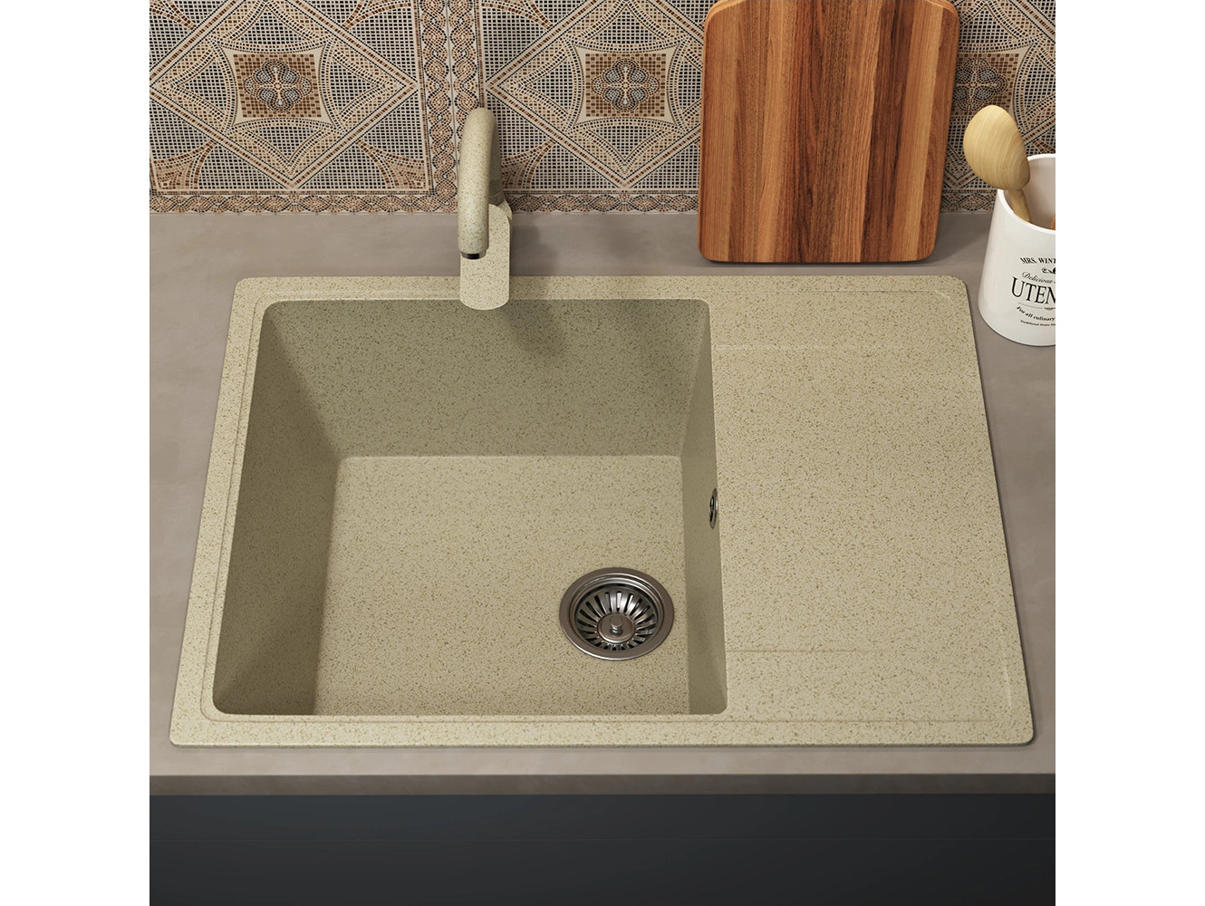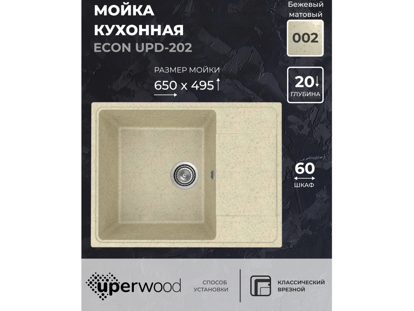 - Кухонная мойка Uperwood ECON UPD-202-002 бежевая матовая