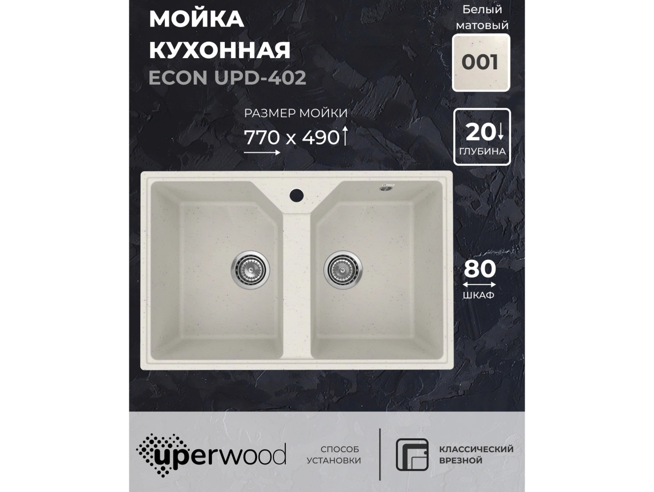 Кухонная мойка Uperwood ECON UPD-402-001 белая матовая