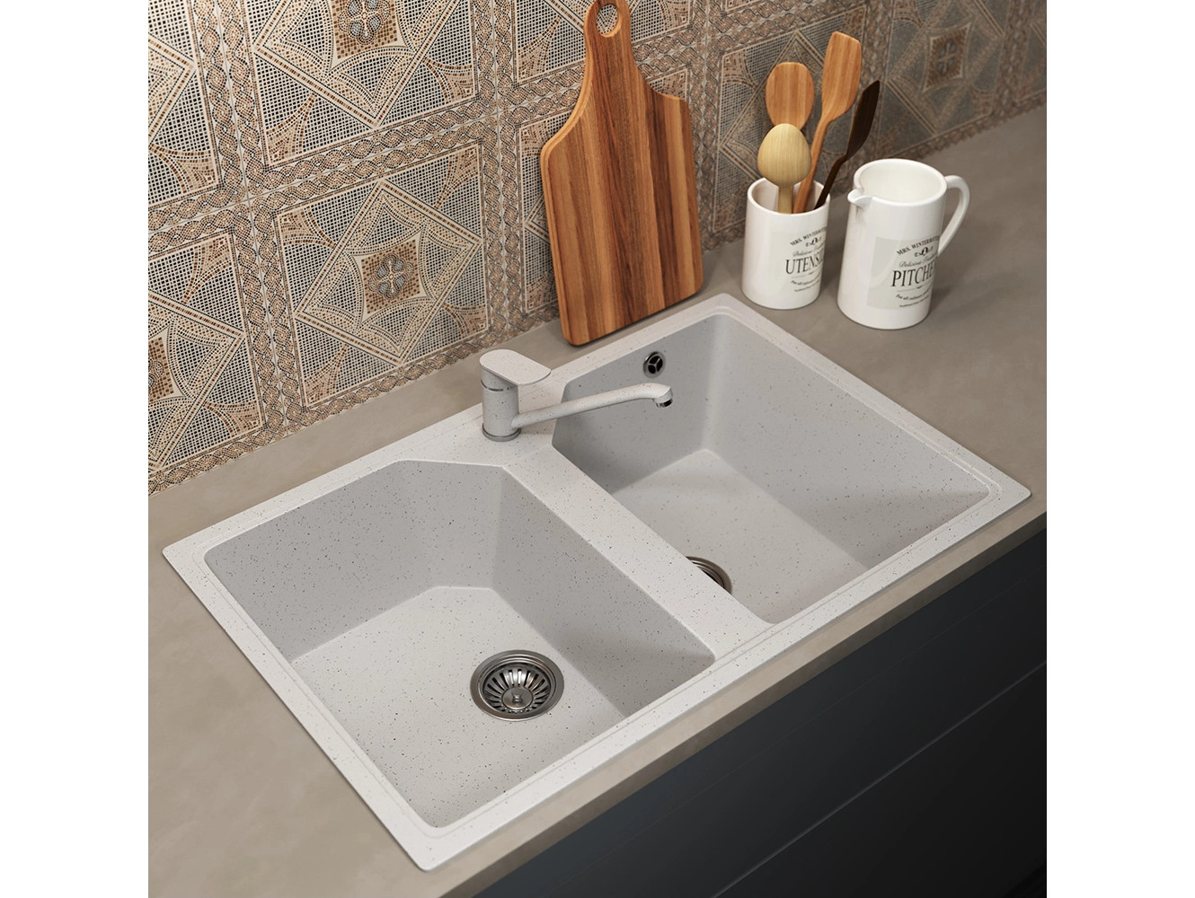 - Кухонная мойка Uperwood ECON UPD-402-001 белая матовая