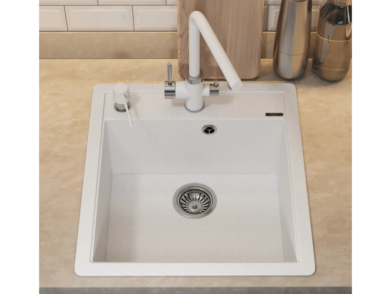 - Кухонная мойка Uperwood Quartz UPD-07-01 белая матовая