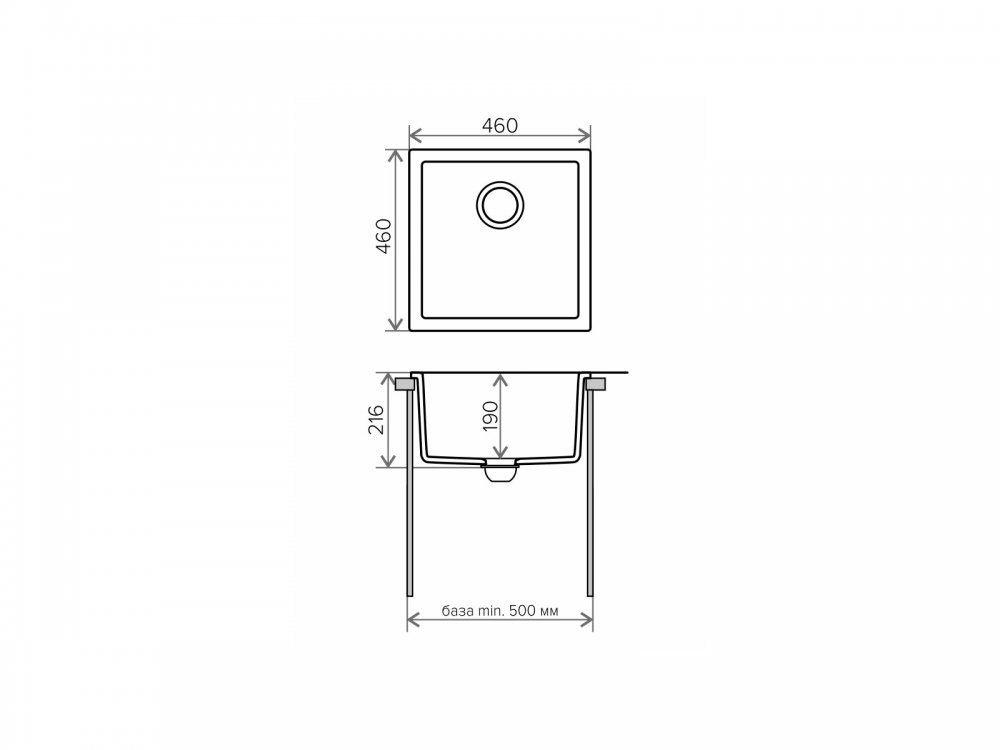 Минимальный размер тумбы под мойку, мм: 500